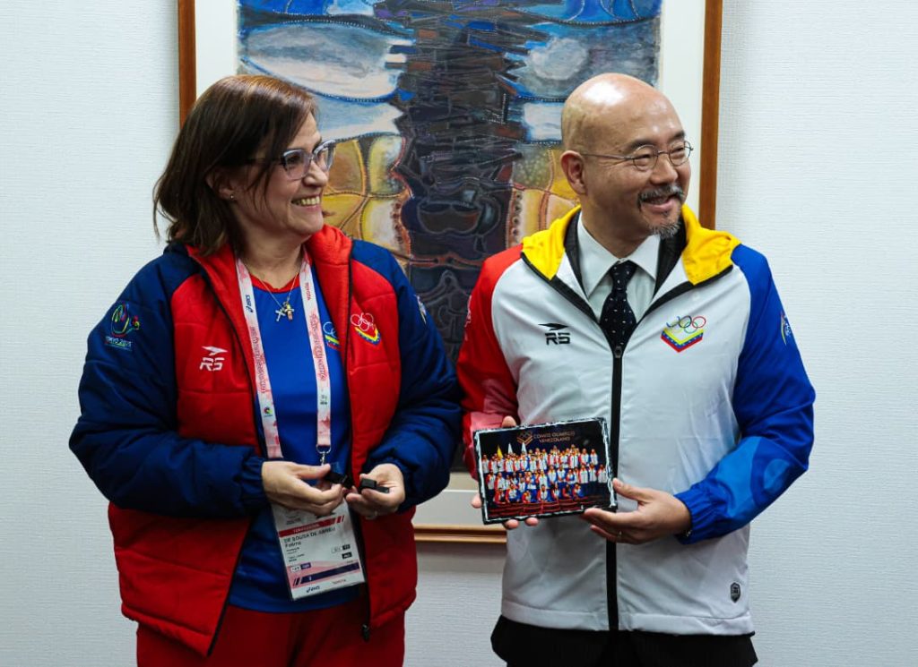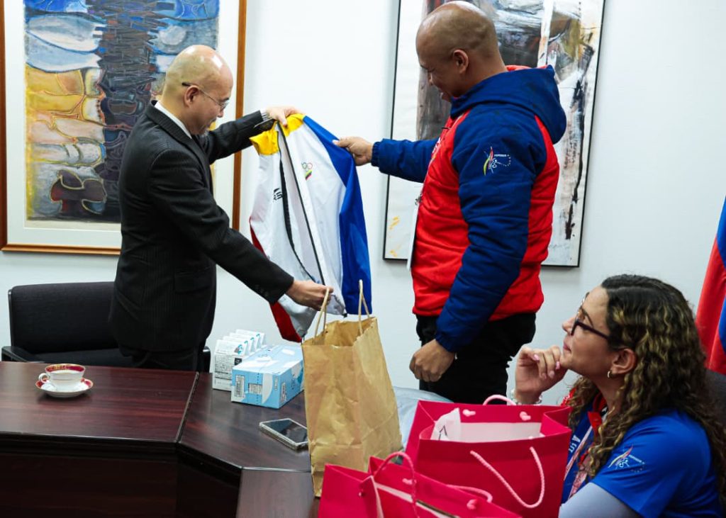 Resaltó que “la cooperación es clave para la inclusión” y entregó a los representantes diplomáticos el uniforme oficial del equipo venezolano como muestra de gratitud por el acompañamiento brindado.