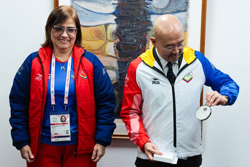 La presidenta de FEPOSOR, Fátima de Sousa, entregó al embajador un cuadro conmemorativo del Comité Olímpico Venezolano y lo nombró miembro honorario permanente de FEPOSOR. A su vez, la secretaria general de la federación, Gioconda Fajardo, entregó la medalla oficial del evento como reconocimiento al apoyo ofrecido a la delegación deportiva.