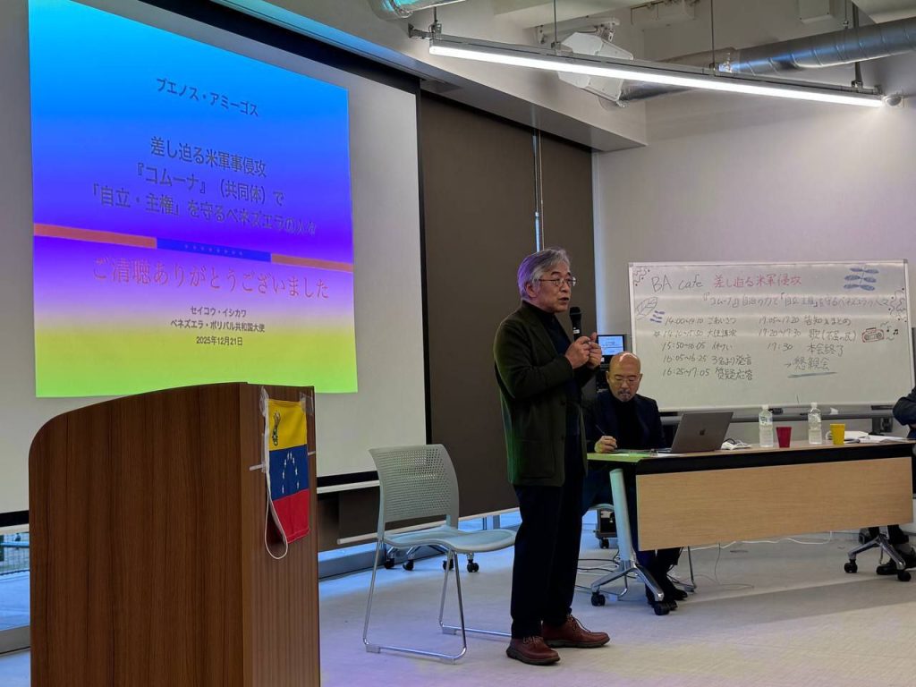 Tokio, 21 de diciembre de 2025.- En un evento organizado por el movimiento de solidaridad Buenos Amigos, académicos y activistas se reunieron en Tokio para la conferencia “La defensa de la independencia y la soberanía a través del Poder Popular en Venezuela: las Comunas”.